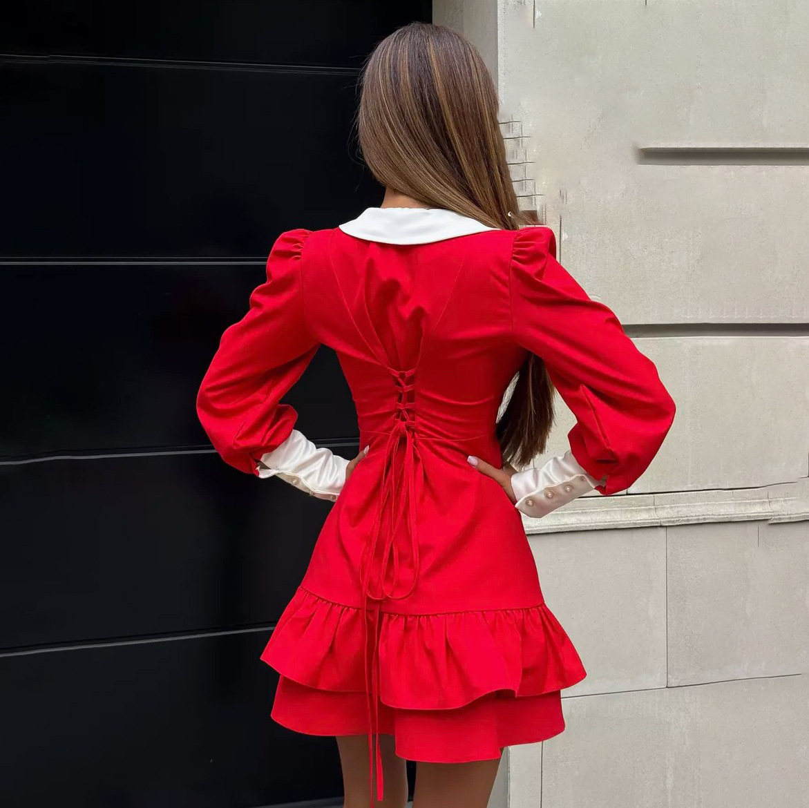 Introducing our stunning A-line dress designed to elevate your wardrobe! This lace-up, waist-controlled dress features a playful ruffled hem and contrasting colors that make it a standout piece for any occasion. Available in classic shades of black, red, and camel, it’s perfect for both day and night events.