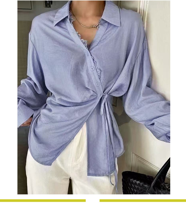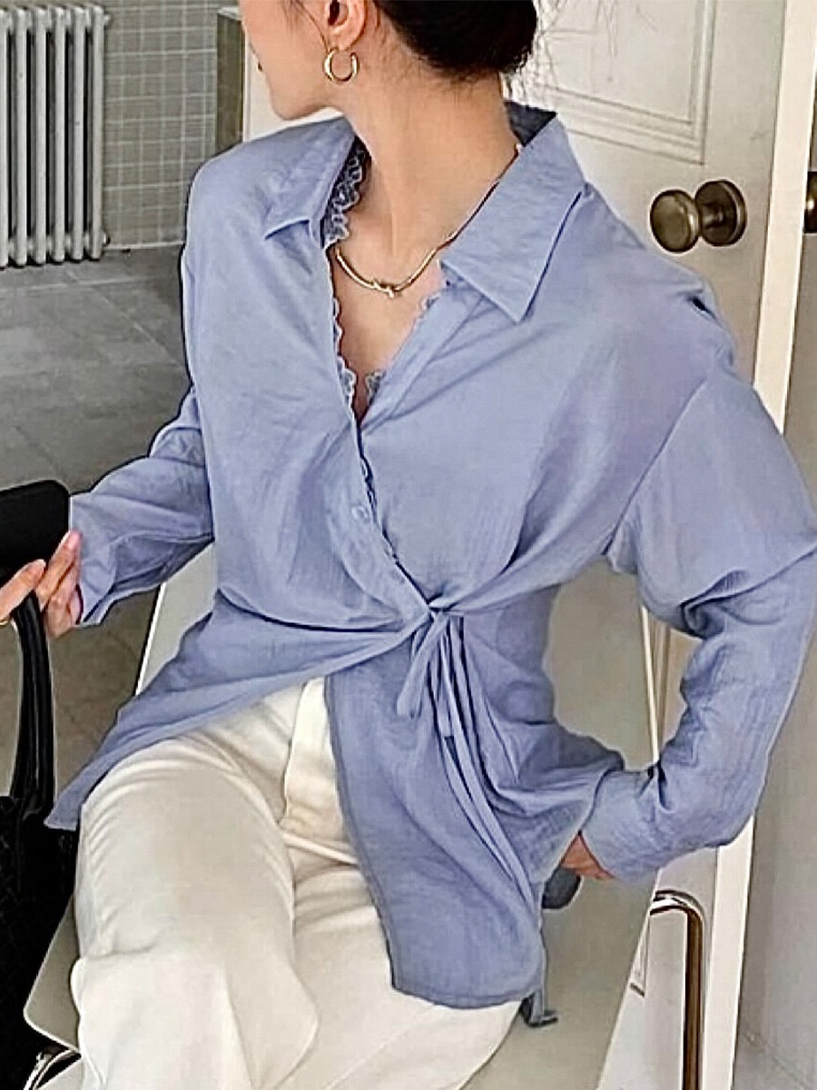 Blue Long Sleeved Shirt with Lace-up Cardigan Style