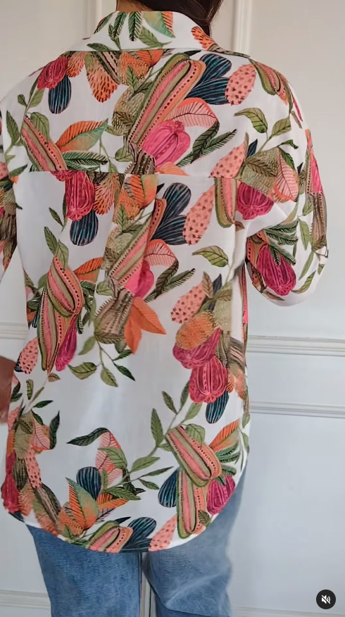 Casual Print Shirt Top with Floral Patterns and Long Sleeves