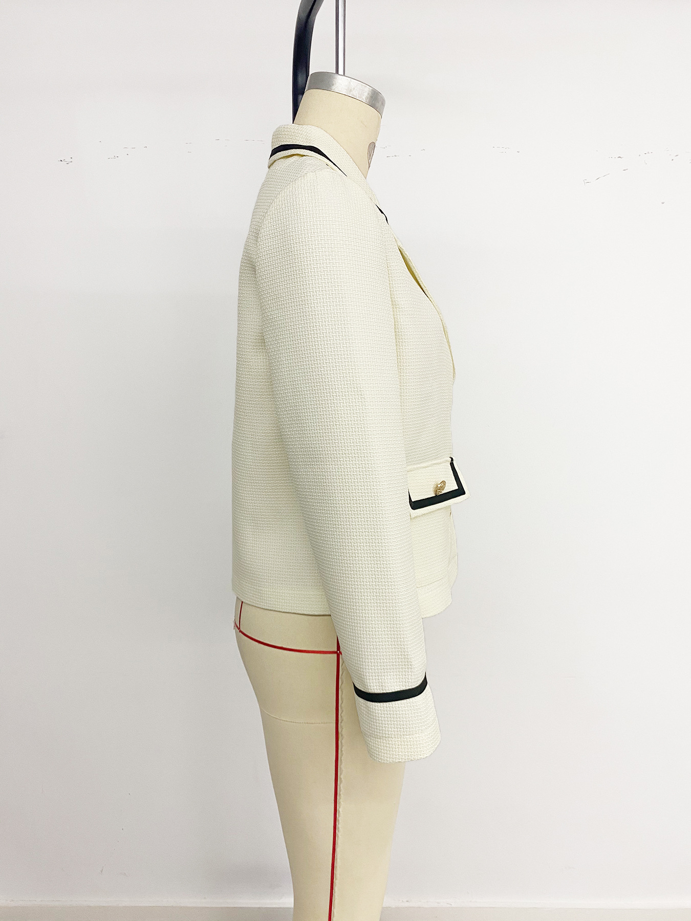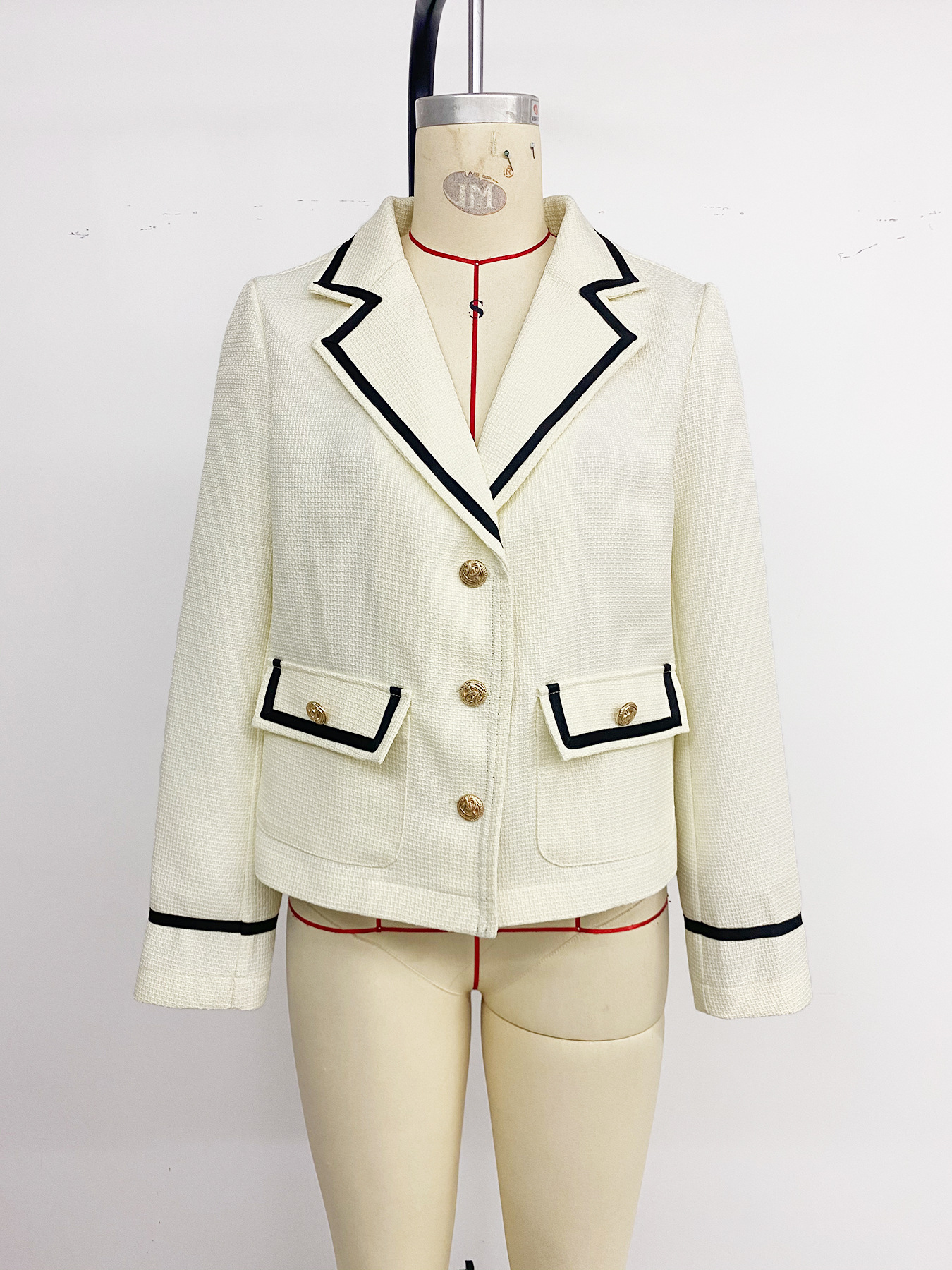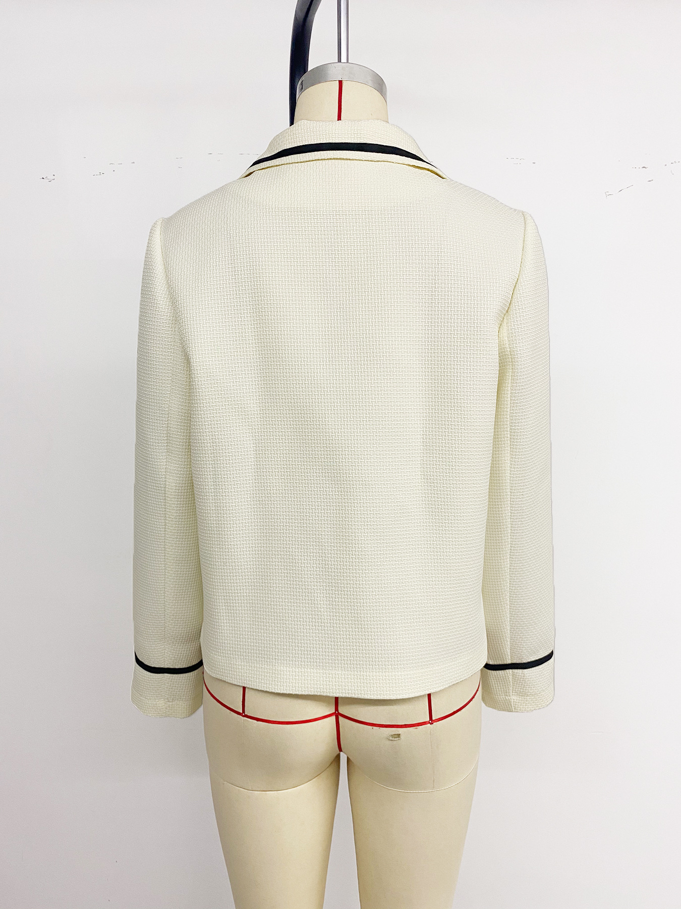 Introducing our Chanel Style Suit Coat, crafted from high-quality polyester fiber for durability and comfort. This stunning coat is designed with a solid beige color that enhances its elegance, making it perfect for any occasion. With sizes ranging from S to XL, it is tailored to fit a variety of body types. The coat features a conventional long sleeve design, ensuring that you stay warm during the autumn months while maintaining a chic appearance.