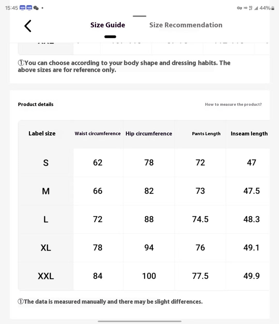 Q: What sizes are available?A: Our cropped pants come in sizes S, M, L, XL, and XXL. Please refer to our size chart for accurate measurements.
