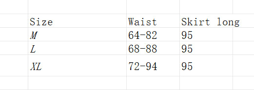 Q: What sizes are available?A: The skirt is available in sizes M, L, and XL. Please refer to our size chart for guidance.