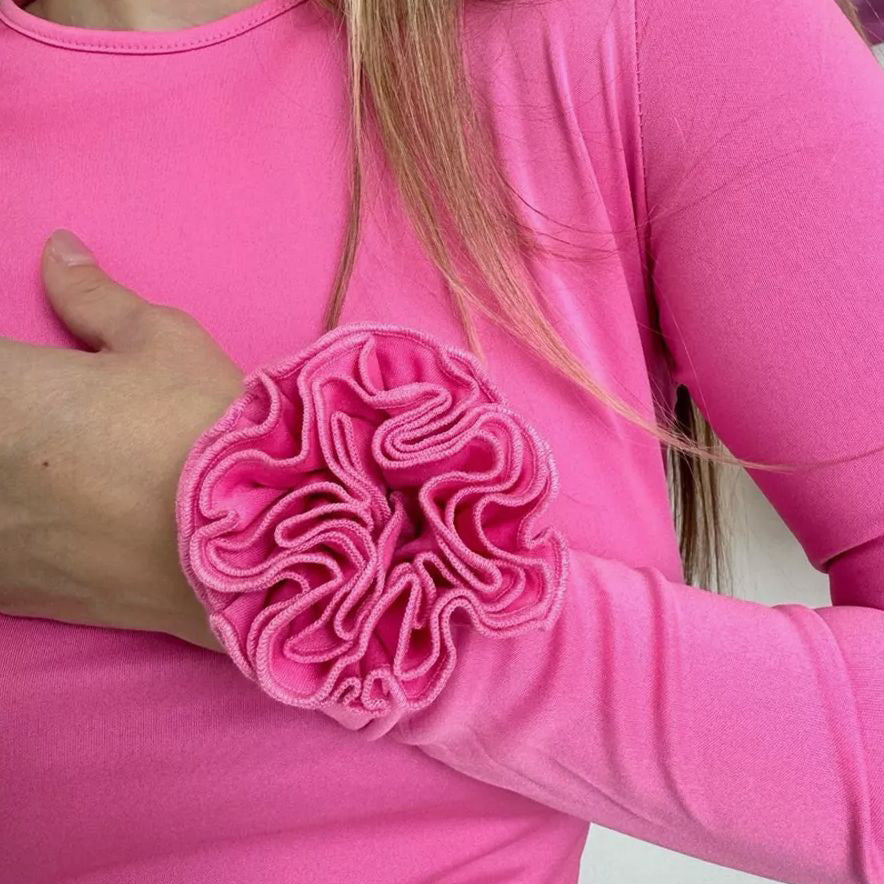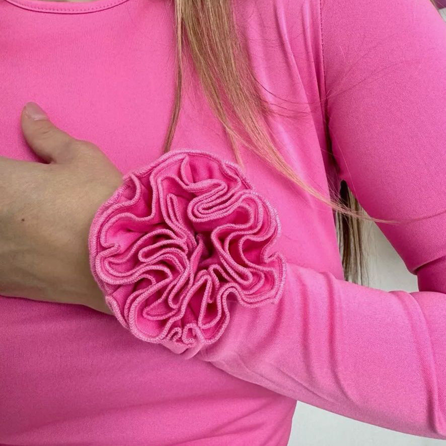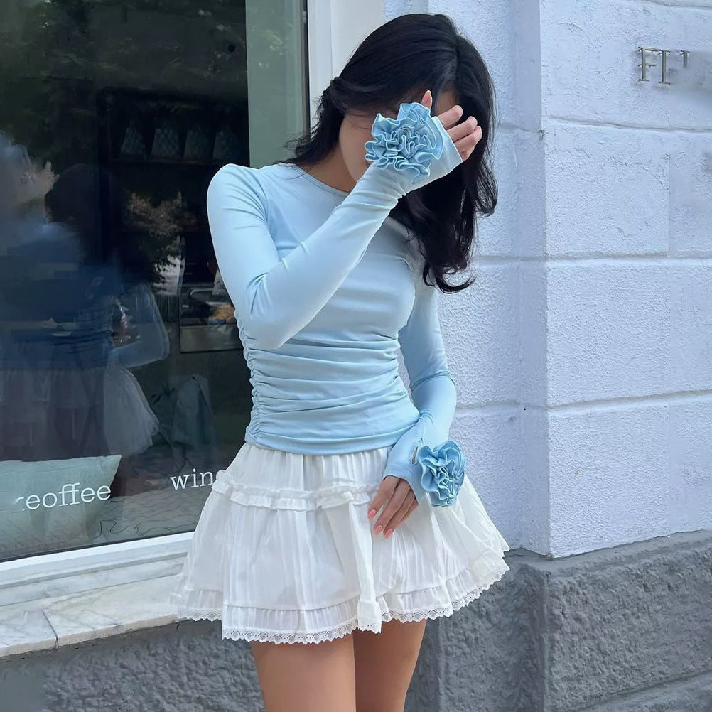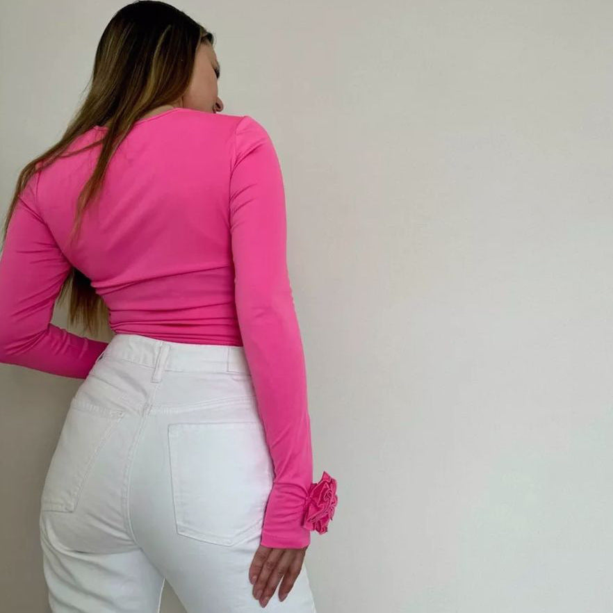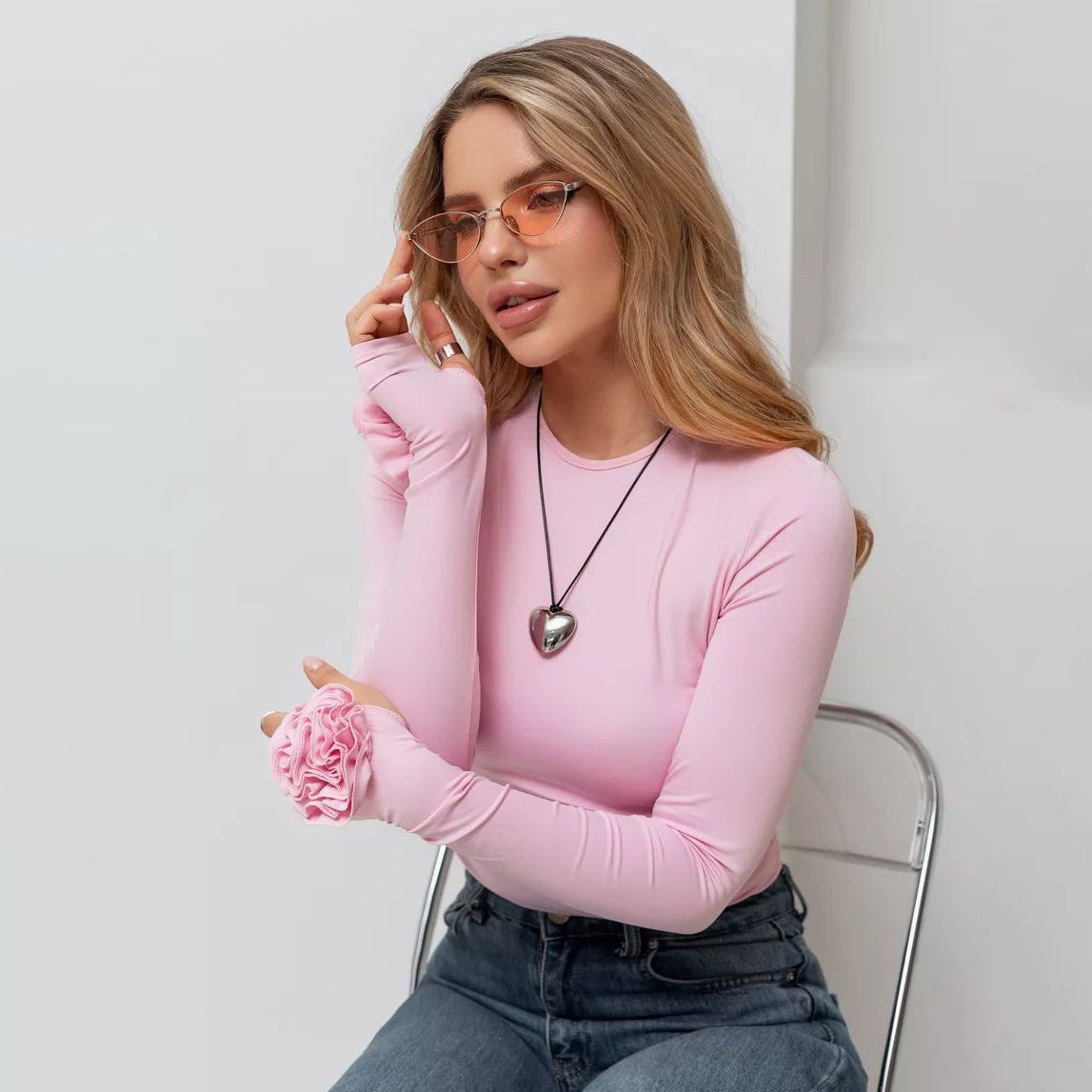 Floral Long Sleeve Slim-fit Tops with Charming 3D Design