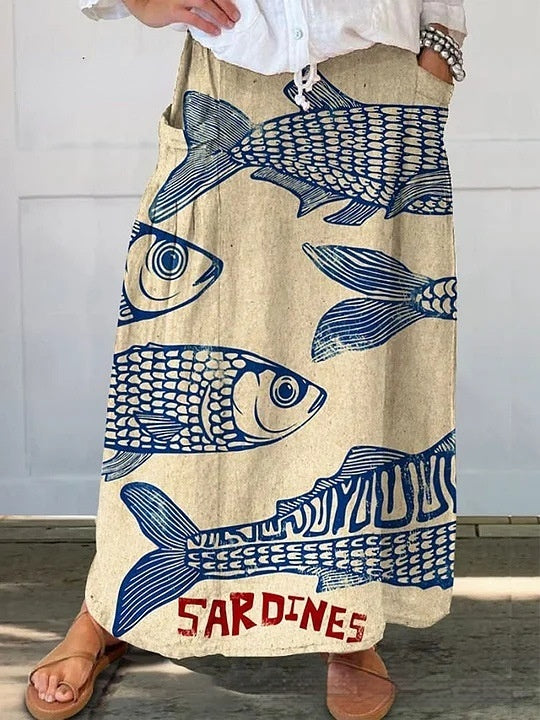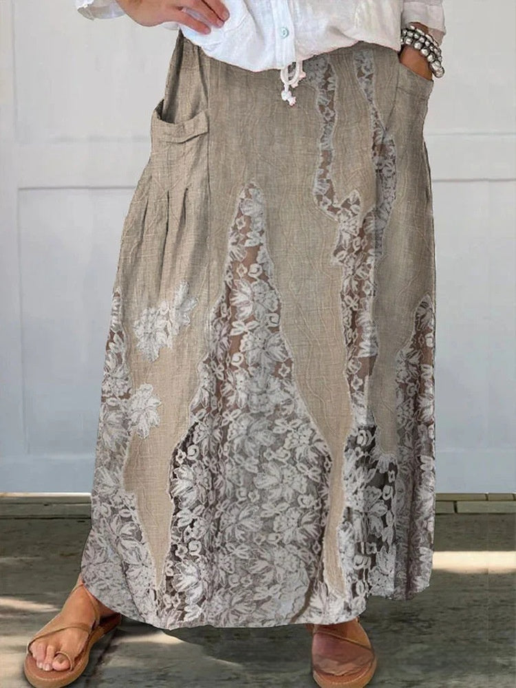 Floral Stripe Casual Skirt with Micro Elasticity for Comfort