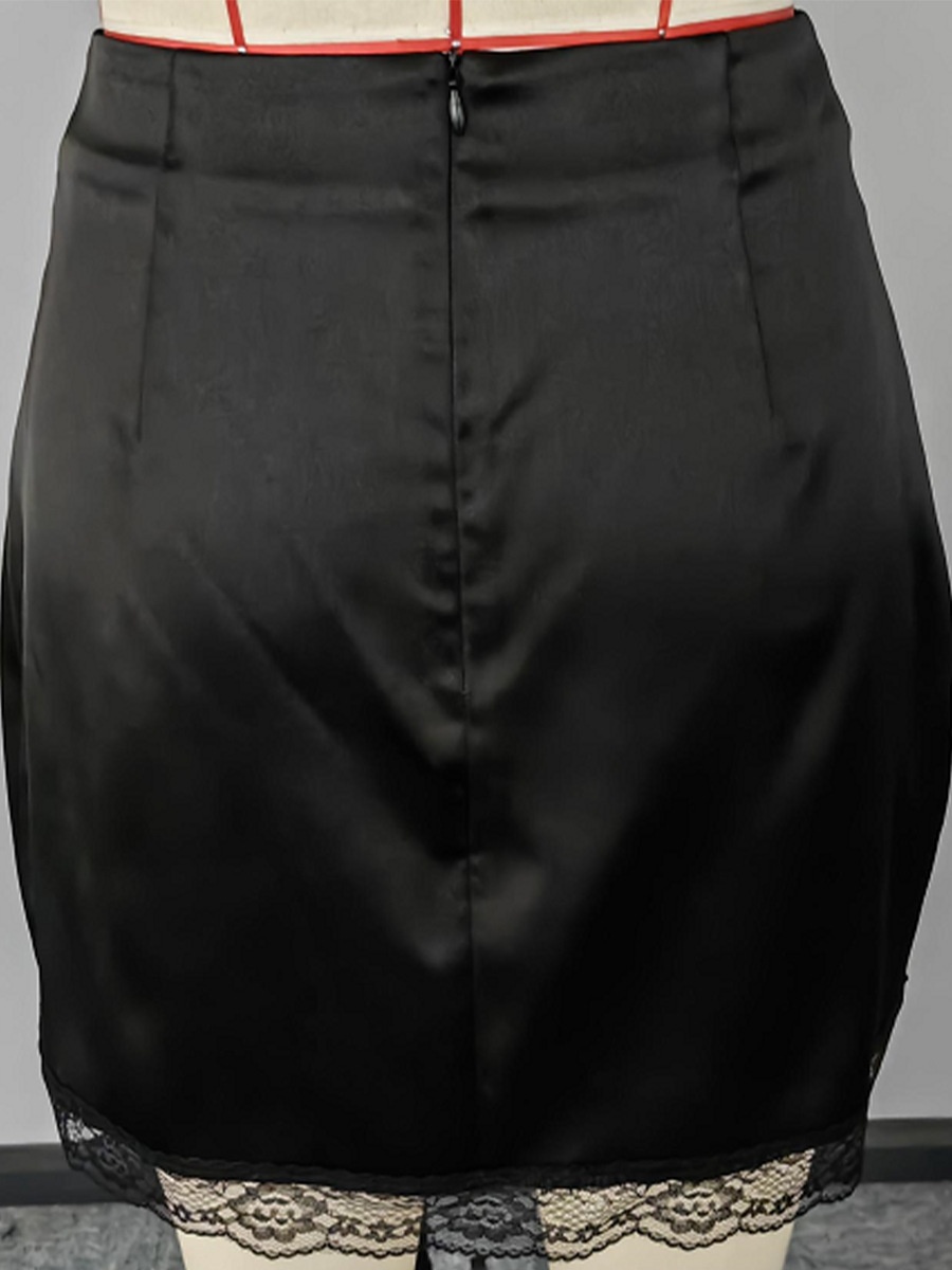 Elevate your style with our Temperament Lace Edge Half Length Skirt, a perfect addition to your wardrobe for any season. Designed for versatility, this chic black skirt features a solid color and a delicate lace edge that adds a touch of femininity to your outfit. Whether you're headed to the office, a casual outing, or a night out, this skirt transitions effortlessly to suit any occasion.