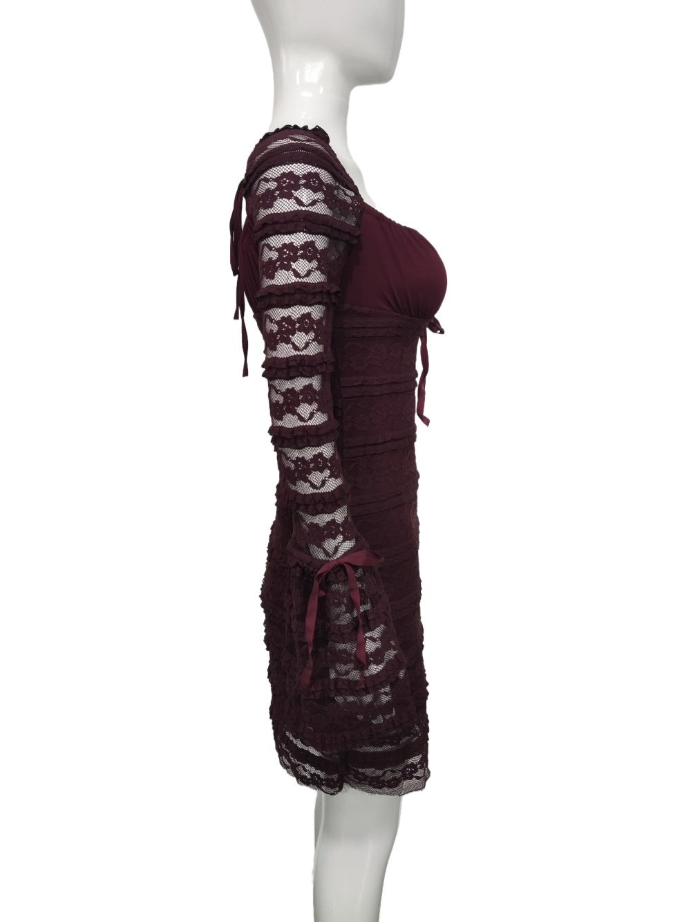 The square collar and bell sleeves bring a unique flair to this dress, ensuring you catch everyone's eye. Made from high-quality polyester lace, it offers both comfort and style. Ideal for social gatherings, parties, or casual outings, this dress is versatile enough to be dressed up or down.