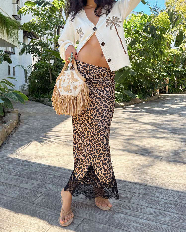 Leopard Print Lace Long Skirt with Elegant Fall Style