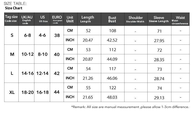 1. Asian sizes are 1 to 2 sizes smaller than European and American people. Choose the larger size if your size between two sizes. Please allow 2-3cm differences due to manual measurement. 2. Please check the size chart carefully before you buy the item, if you don't know how to choose size, please contact our customer service. 3.As you know, the different computers display colors differently, the color of the actual item may vary slightly from the following images.