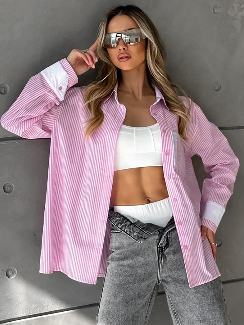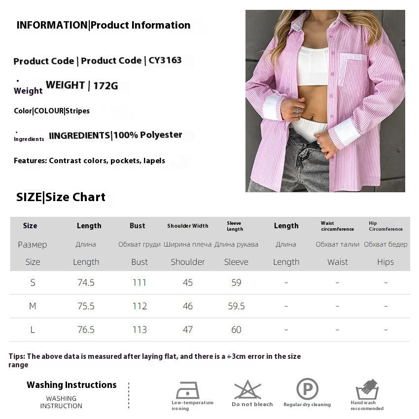Introducing our Oversize Loose Striped Blouse, a stylish addition to your wardrobe that combines comfort and chic street fashion. Made from a blend of polyester and cotton, this blouse is perfect for those who love a relaxed fit without compromising on style.