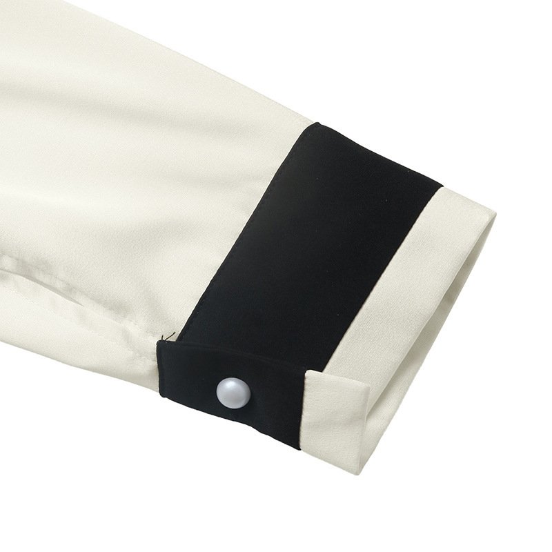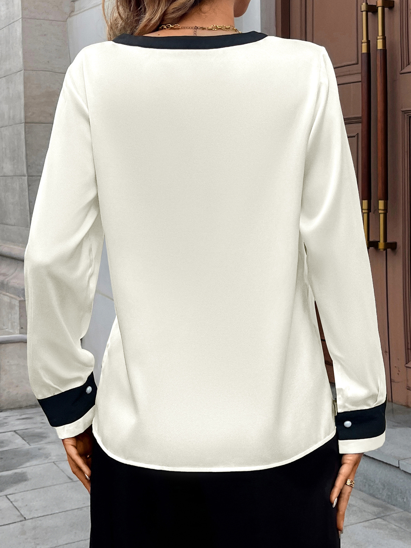 Pearl Button Deep V-neck Color-block Blouse for Elegant Style