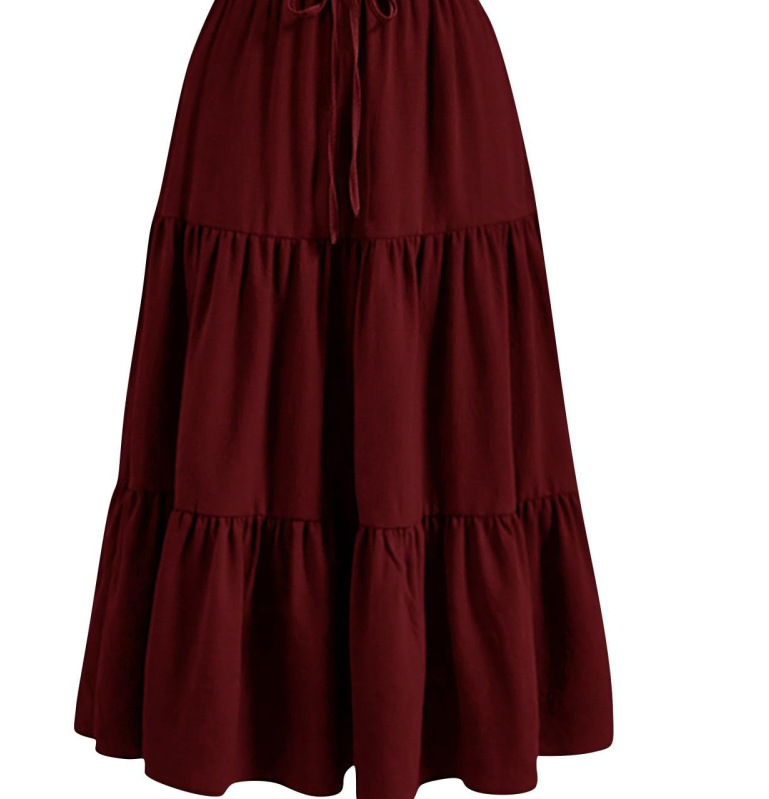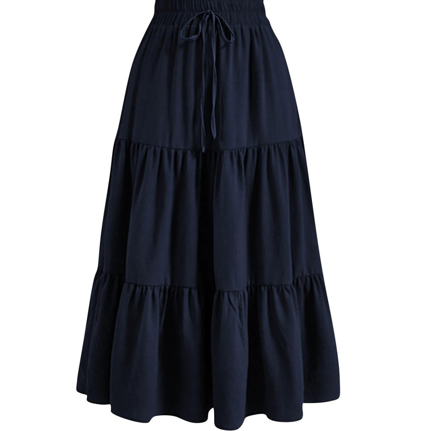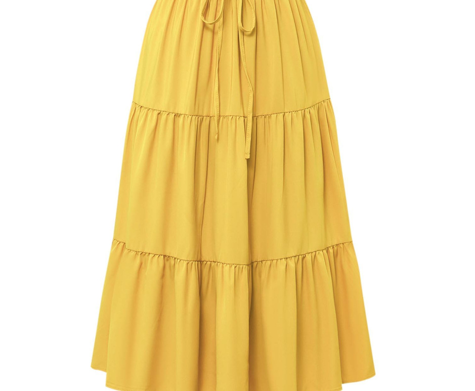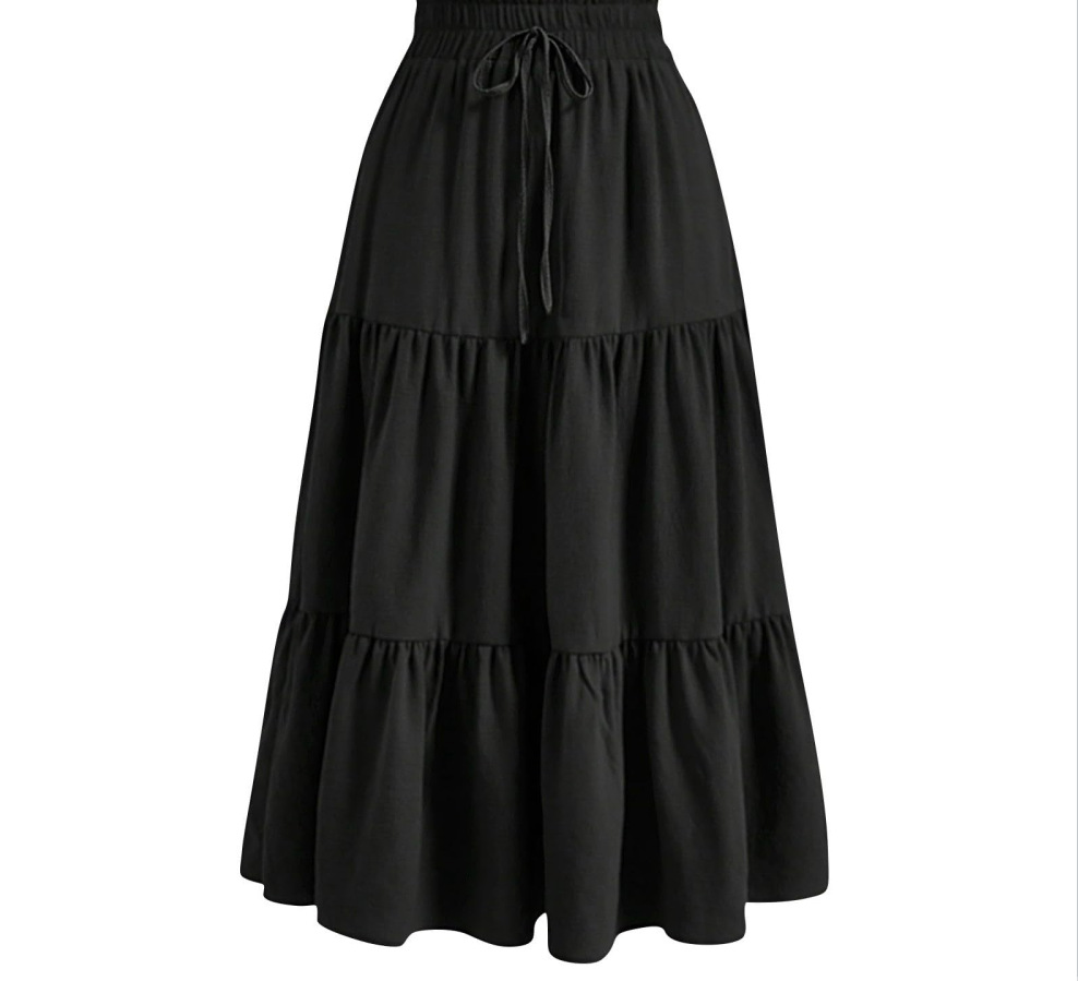 The Ruffle Pocket Skirt is available in a range of stunning colors, including black, dark blue, army green, wine red, blue, pink, gray, yellow, light blue, and purple, allowing you to express your personal style effortlessly. The long skirt length provides a flattering silhouette that can be dressed up or down, making it a versatile addition to your wardrobe.