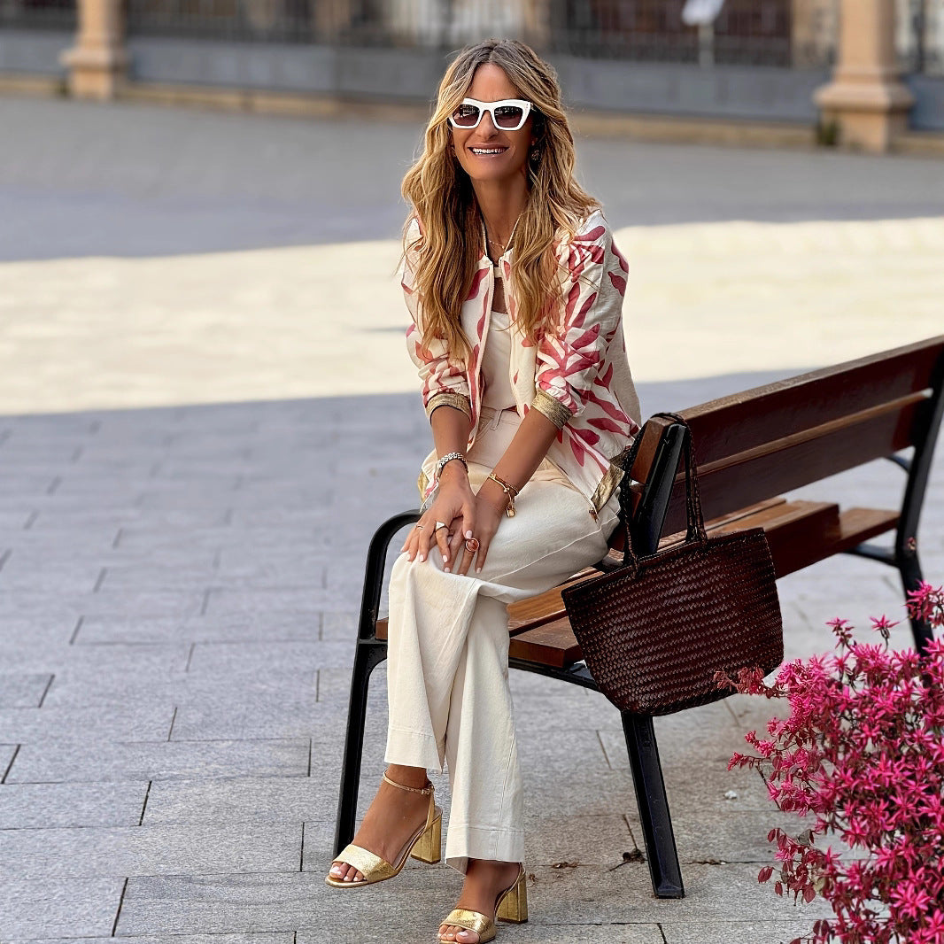 Slim Plant Zipper Coat with Long Sleeve for Trendy Street Style