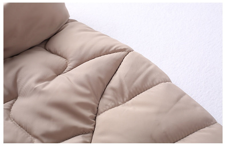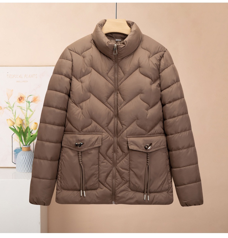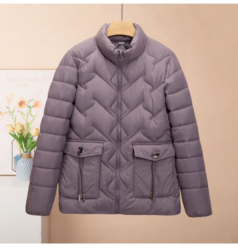 The jacket features a loose fit that ensures comfort and ease of movement, making it ideal for commuting or casual outings. It's designed without a fur collar, keeping the look sleek and minimalistic. The down cotton filler adds warmth, making it a practical choice for colder weather.