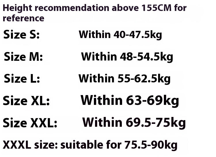 Size: S size 40.00 kg-47.50kg,M size 48.00 kg-54.50kg,L size 55.00 kg-62.50kg,XL size 63.00 kg-69.00kg, size XXL 69.50 kg-74.50kg,X size XXL 75.00 kg-90.00kg