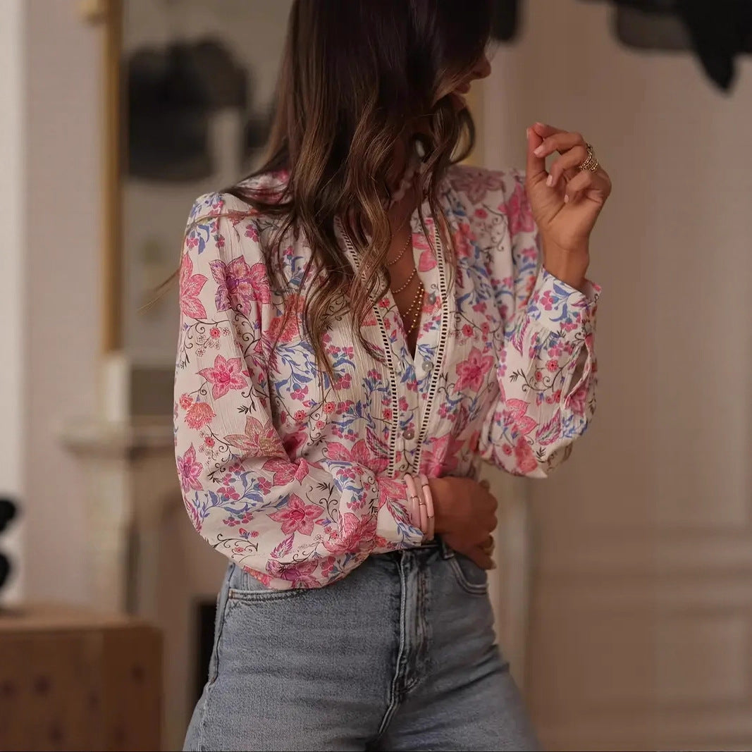 V-neck Single Breasted Shirt with Stylish Basic Design